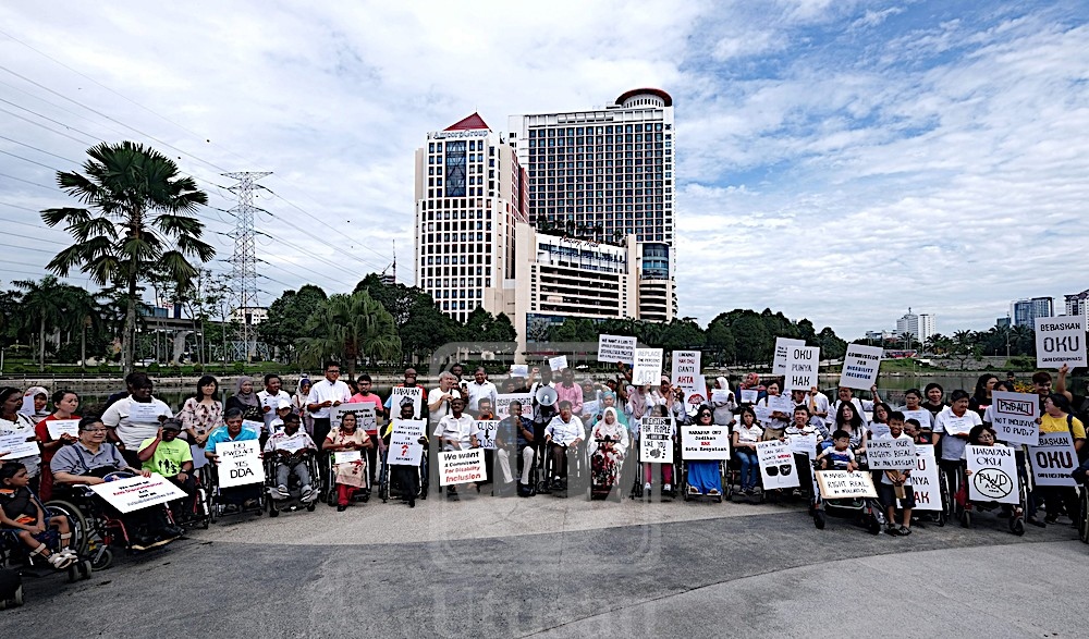 Terdahulu kira-kira 100 OKU dan aktivis berhimpun secara aman di tasik tersebut bagi meluahkan pelbagai isu, hak-hak dan perlindungan terhadap OKU.